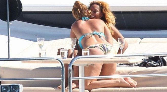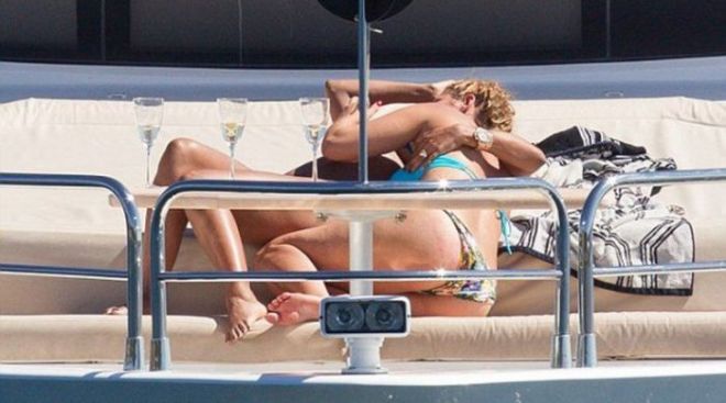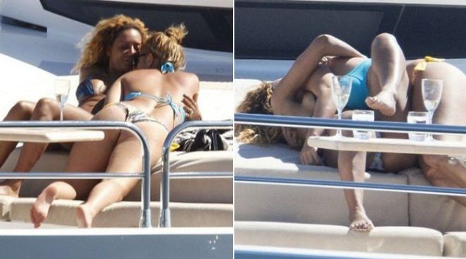 Tras una tarde de sol y champagne, se la vio a los besos y mimos con una de ellas en plena cubierta. Esa misma noche, salió a cenar con su marido Stephen Belafonte como si nada hubiera pasado.