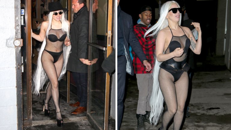 Lady Gaga, conocida por sus atuendos estrafalarios, salió a la calle en Nueva York usando un catsuit transparente, que dejaba al descubierto su ropa interior negra.