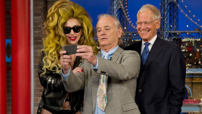 La última estrella que tomar un autorretrato en un teléfono celular fue la extravagante Lady Gaga, quien sorprendió a su compañero invitado en «The Late Show», Bill Murray cuando posó para una foto con el actor cómico.
