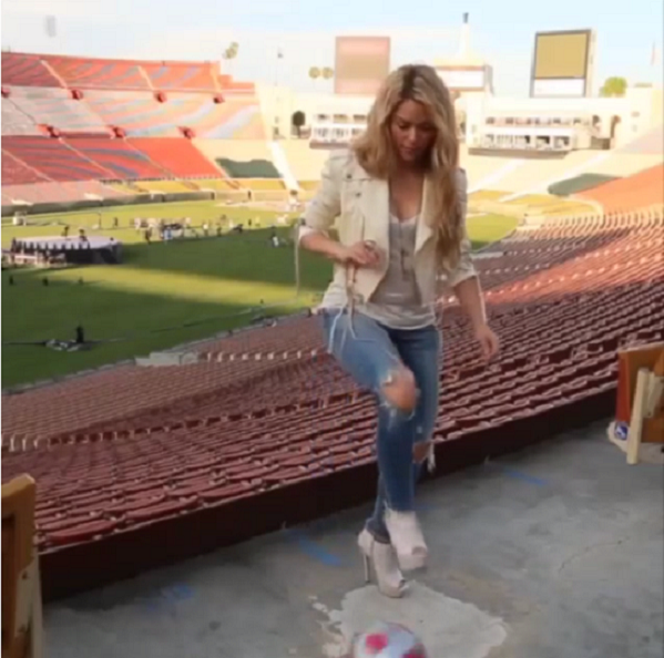 La cantante colombiana es sabido que es una exitosa bailarina pero tiene un talento escondido: sabe manejar muy bien la pelota. ¿Lo más llamativo? ¡Con tacos puestos!