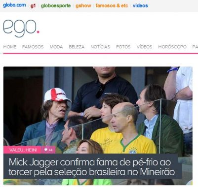 Según publica el sitio Ego.globo.com, los torcedores intentaron hacerles una suerte de maleficio a los germanos. «Ajeno a la controversia sobre su fama de mala suerte, Mick Jagger se ha convertido amuleto de la selección brasileña. El martes, la multitud llevó un muñeco del él, al Mineirao. ‘¡Vamos Alemania!’, gritó el «representante» del cantante en el estadio, esta vez con la camiseta de Alemania».