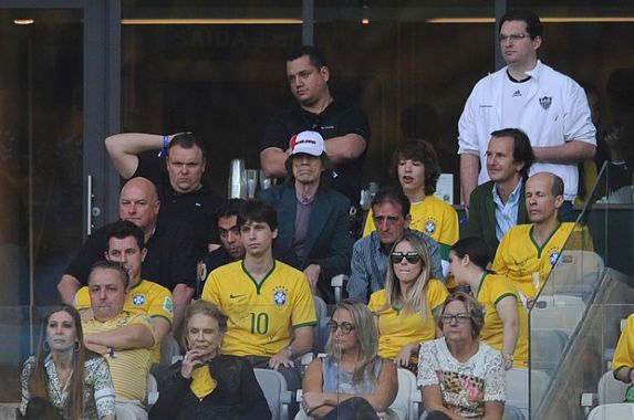Pero no contaban con el Mick Jagger estaba en un palco vip junto a Lucas, su hijo brasileño, deseando que la verdeamarella alcance la final.