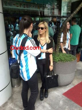 Como cada uno de los argentinos que esperan el partido de la Selección Nacional contra Holanda por un lugar en la gran final del Mundial Brasil 2014, Evangelina Anderson lucio muy coqueta, momentos antes de llegar al Estadio Arena Corinthians.