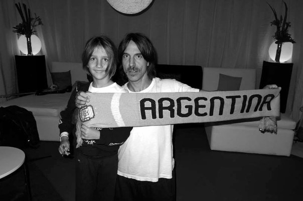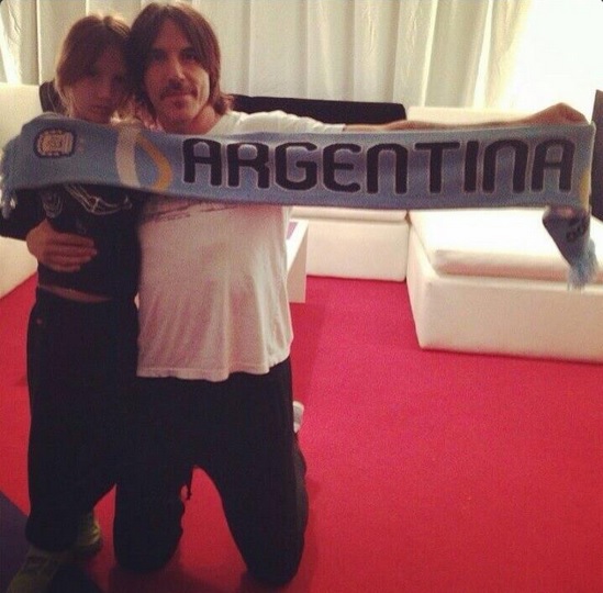 Anthony Kiedis, conocido vocalista de los Red Hot Chilli Peppers, subió una foto a su cuenta de Facebook donde se lo ve posando con el pequeño con una bufanda de la selección argentina.