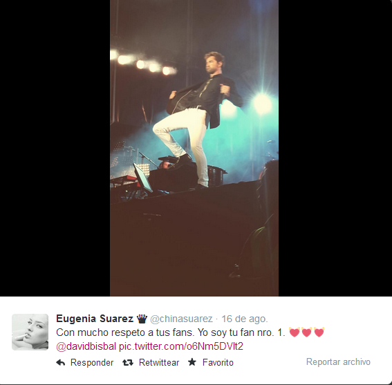 InicioFamososLa China Suárez afirmó que es "fan nro. 1" de David Bisbal