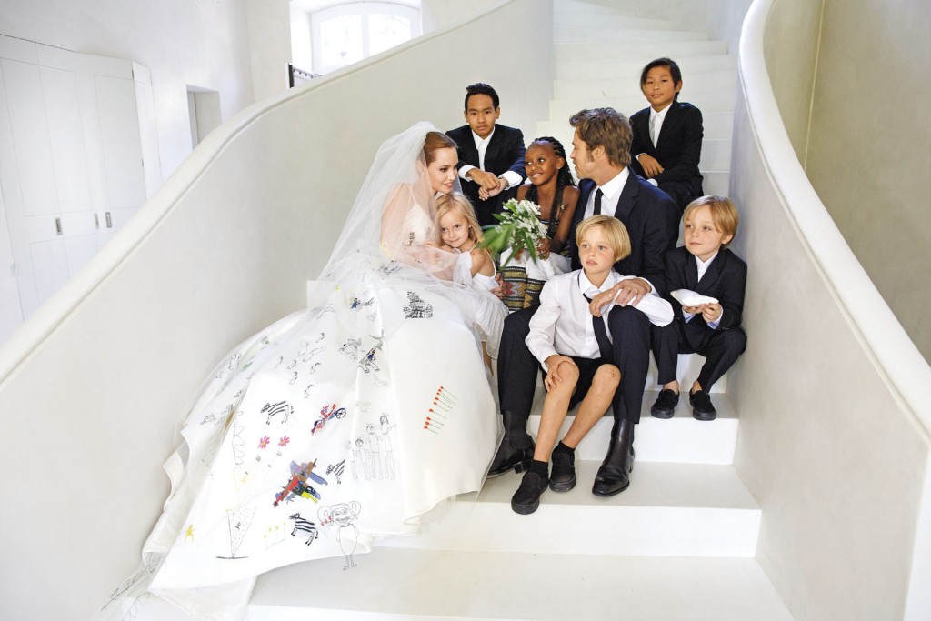 La pareja hizo a sus seis hijos partícipes de la ceremonia. Zahara y Vivienne fueron las damas de flores, dejando caer pétalos por el pasillo por el que su madre Angelina, y dos hermanos, Knox y Pax, caminaron hacia el altar.