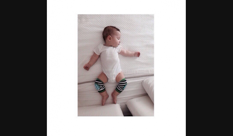 Sabrina Garciarena subió a las redes sociales una imagen de su pequeño hijo con rodilleras, ya que el tiempo va pasando y León se quiere largar a caminar.