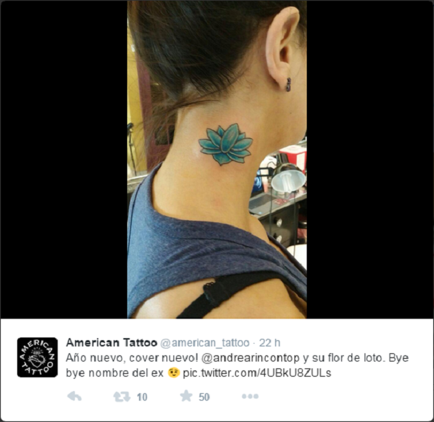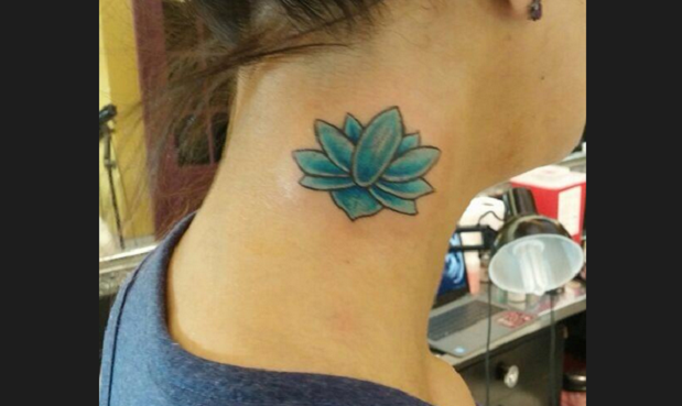 Ahora, luce una flor de loto turquesa, y ya no queden rastros del cantante en su cuerpo.