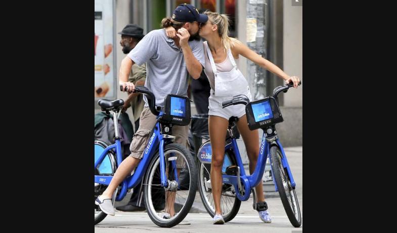 Leonardo Dicaprio se mostró super feliz y a los besos junto una bella rubia, mientras ambos daban un paseo en bicicleta por Manhattan.