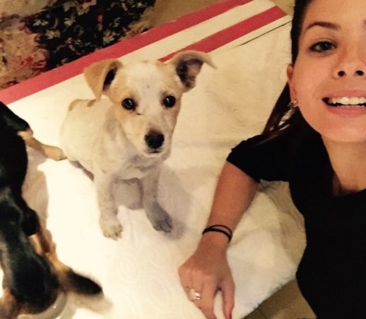 Subió a las redes sociales una hermosa y tierna foto con uno de los perritos que encontró.