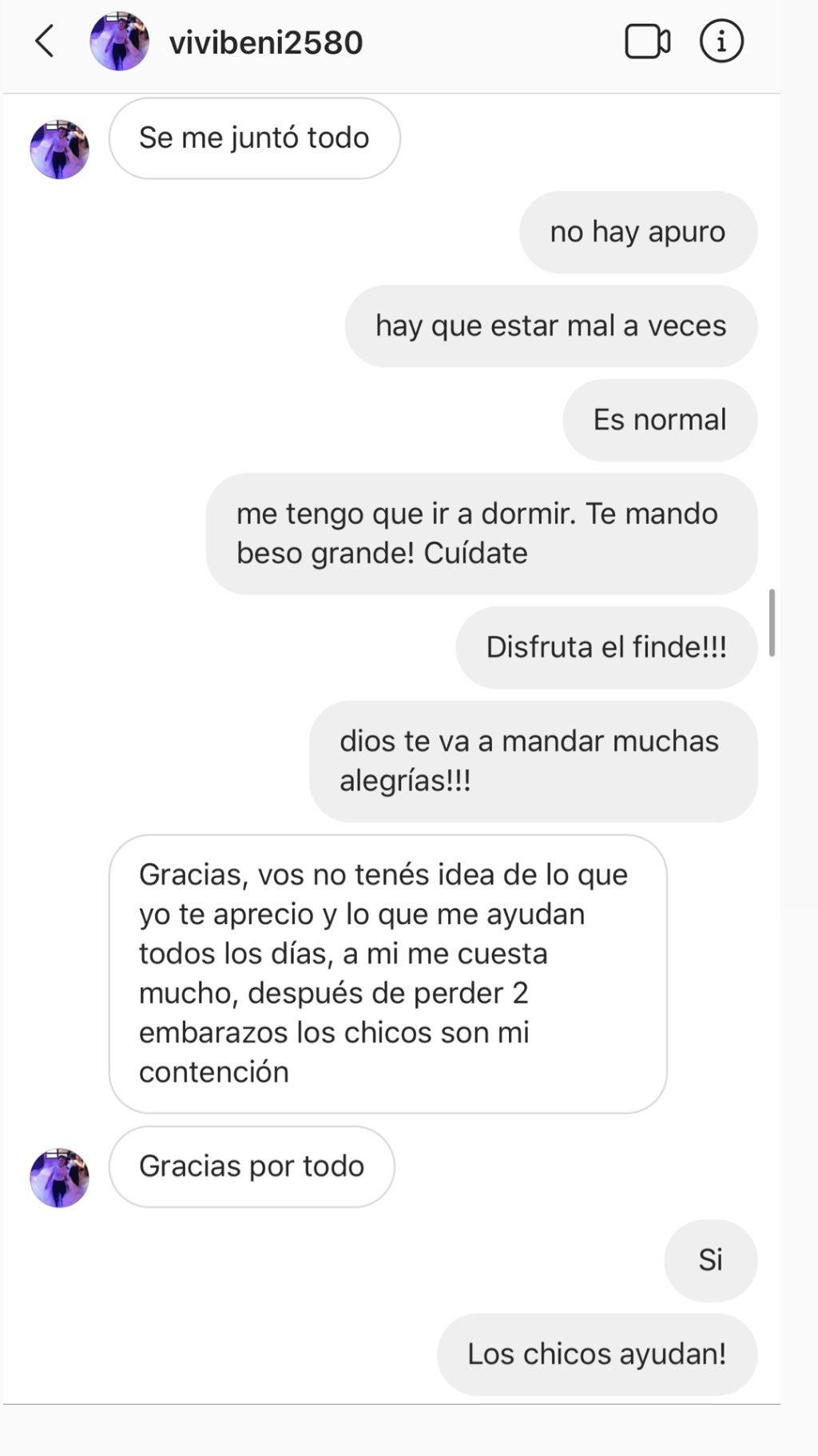 La modelo compartió capturas de sus charlas con su ex empleada en su cuenta de Instagram que refleja el gran vínculo que mantenían.