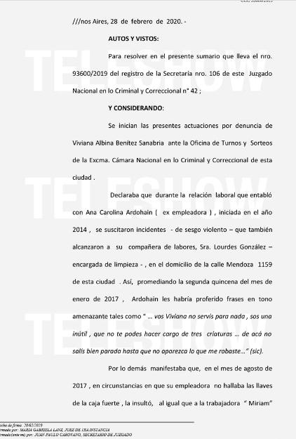 A poco más de dos meses de conocerse la denuncia por “hostigamiento y maltrato psicológico” que Viviana Benítez realizó contra Carolina Pampita Ardohain, la Justicia se expidió con una resolución favorable para la modelo.
