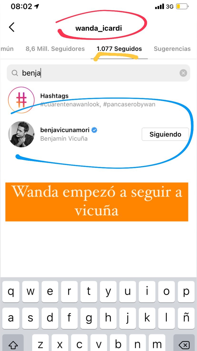 Además la empresaria le dio follow al perfil de Instagram del actor chileno, apuntando directamente a su expareja como la tercera en discordia.
