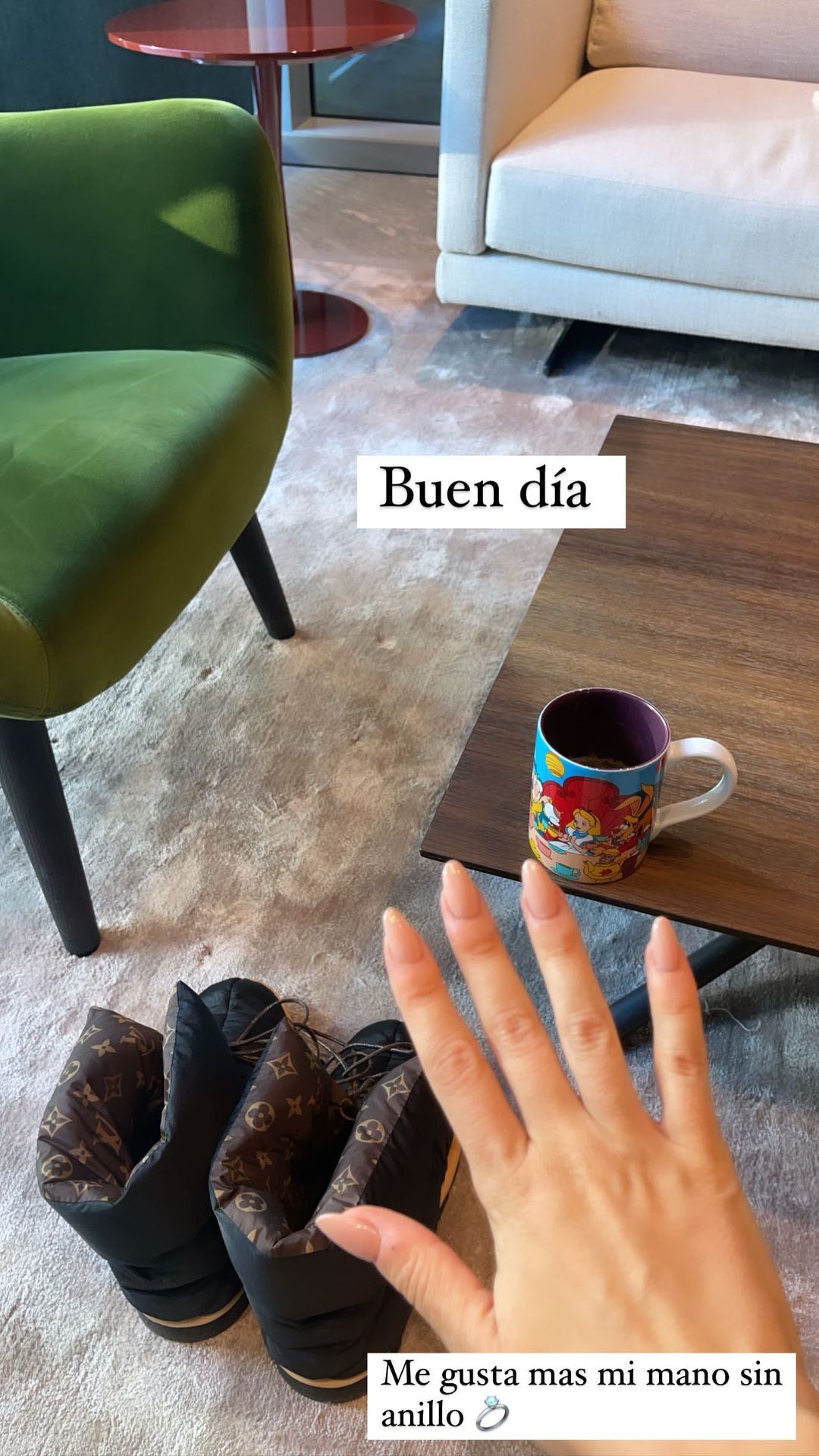 Fue este lunes aproximadamente a las 10 de la mañana de Italia (cuando en la Argentina el reloj marcaba que eran las 5 de la madrugada). “Buen día”, escribió en la red social en la que tiene casi nueve millones de seguidores. Allí, tomó una foto en la que se muestra una colorida taza de café sobre una mesa ratona, unas botas de Louis Vuitton y, lo más importante, muestra su mano “vacía”, sin sin ningún accesorio. Acompañó la imagen con una fuerte afirmación.