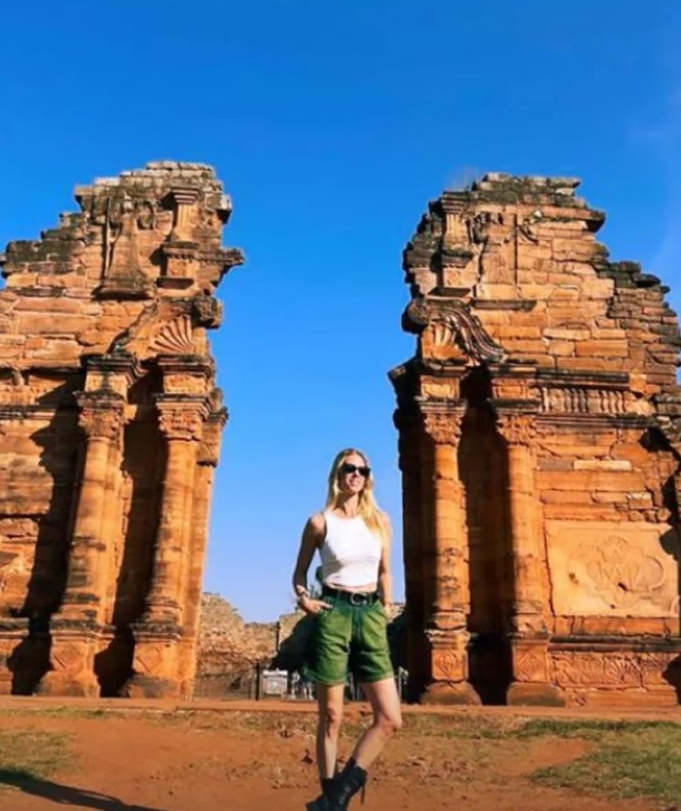 Nicole posteó en su Instagram historias con postales desde las Reducciones de San Ignacio. Los vestigios de lo que fue una de las civilizaciones más impprtantes del siglo XVII llamó la atención de Nicole quien lo reflejó en sus fotos. Allí se la pudo ver acompañada de un numerosos contingente.