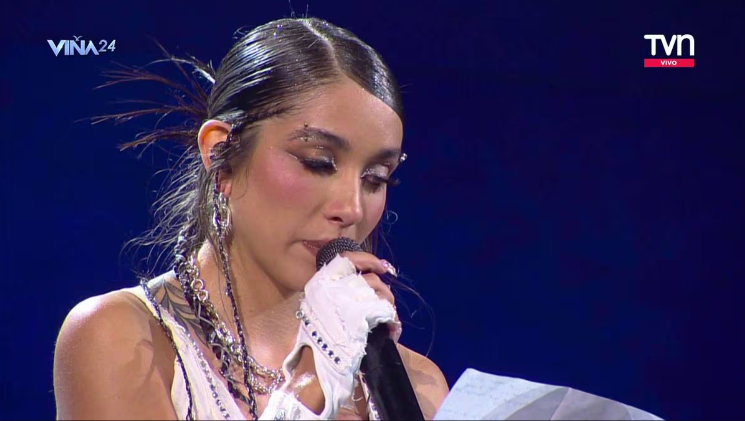 “Quiero detenerme un minuto para recordar que todos los que estamos acá, asumimos el compromiso de que Viña se levante después de la tremenda tragedia que tuvieron que afrontar. Fui testigo de los cerros quemados que dejaban ver en las marcas del fuego, hace menos de un mes, ahí habían casas”, leyó emocionada la artista.