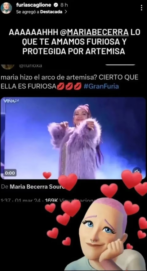 El último gesto que la cantante había hecho y que celebraron los “Furiosos” fue en el show que dio en el Festival de Viña del Mar a principios de mes. En ese festival la artista desplegó todo su talento y consiguió conquistar la Quinta Vergara, considerado para los artistas uno de los escenarios más difíciles. ¿Por qué enloquecieron los fans de Juliana Scaglione? La nena de Argentina al ser presentada en el show realizó lo que se conoce como el Arco de Artemisa. Esto fue días después de la entrada de Coy, la hermana de Furia en el Congelados de GH, quien realizó el mismo gesto en el que parece arrojarse una flecha al aire con la postura de un arquero.