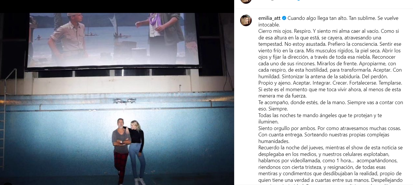 En tanto, Emilia publicó una carta el domingo pasado en sus redes sociales, en la cual se encargó de afirmar la buena relación que la une al padre de su única hija, Gina, a pesar de la ruptura