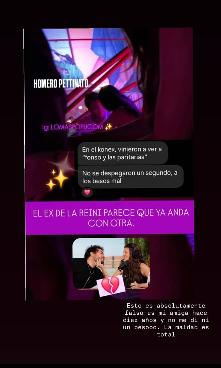 Sofía “La Reini” Gonet volvió a generar revuelo en las redes sociales al compartir conversaciones privadas con su ex pareja, Homero Pettinato. Los mensajes muestran un cruce intenso, cargado de insultos y reproches, que rápidamente llamó la atención de seguidores y medios, reavivando un conflicto que parecía haber quedado atrás.