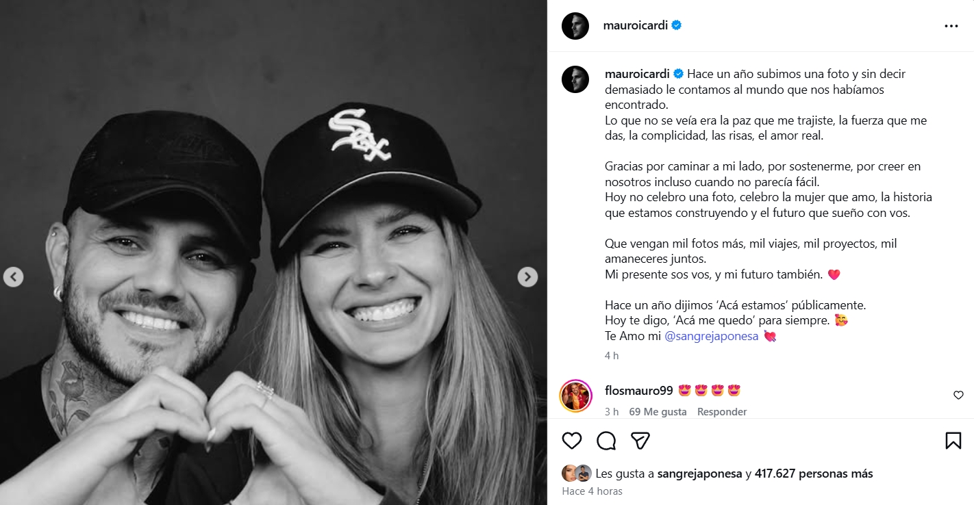 Icardi remarcó que no celebró una foto sino a la mujer que ama, la historia que están construyendo y el futuro que proyecta a su lado. “Mi presente sos vos, y mi futuro también”, expresó.