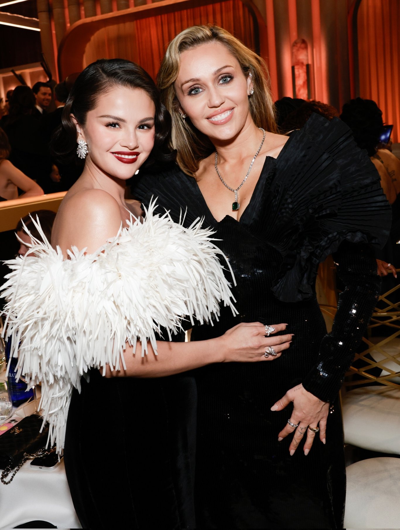 En esta edición de los Golden Globes, tanto Miley como Selena tuvieron una presencia destacada, no solo por sus looks en la alfombra roja, sino también por el impacto simbólico de esta imagen, que quedó instalada como una de las postales más recordadas de la ceremonia.