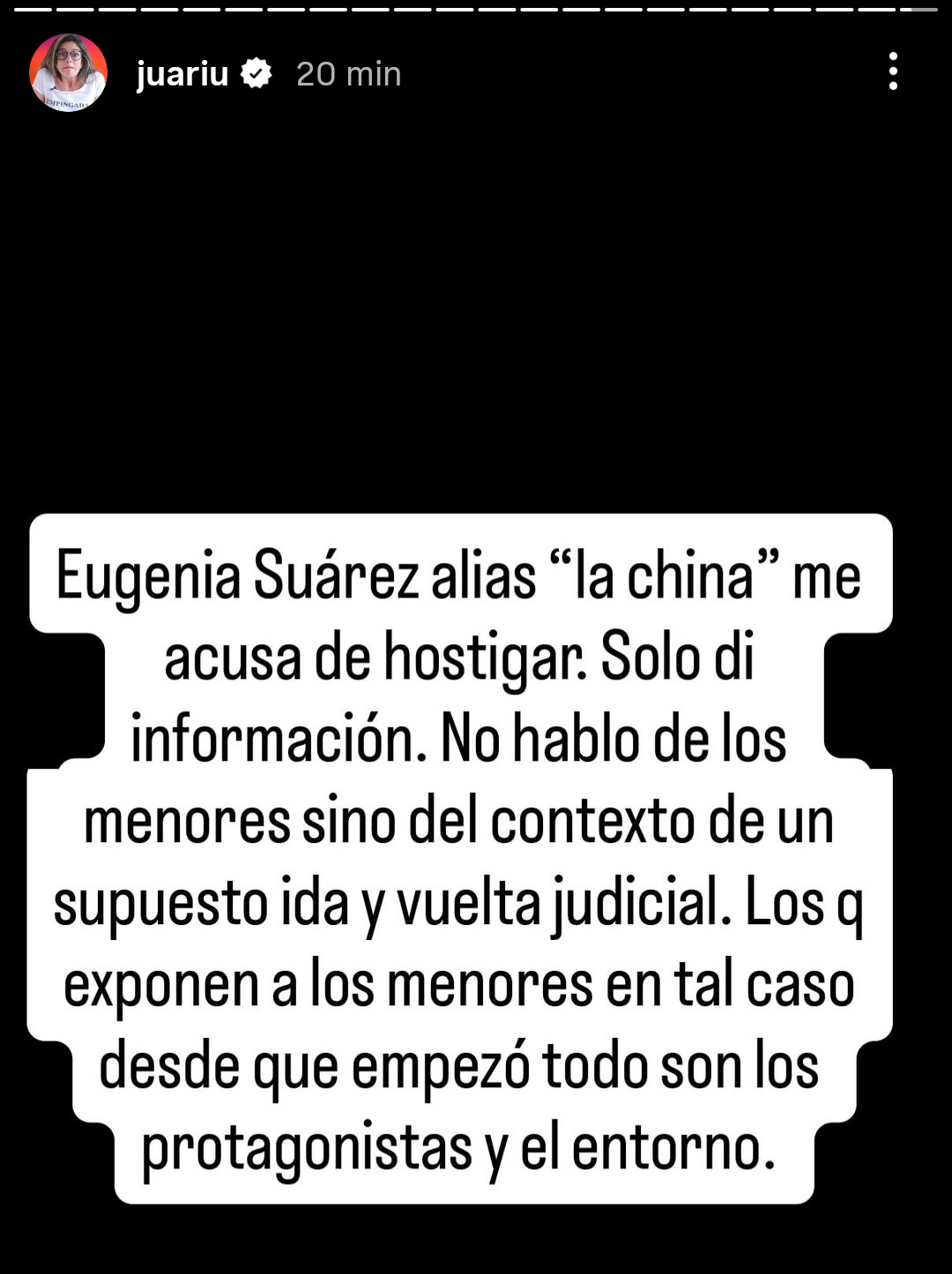 El choque entre ambas escaló cuando China Suárez interpretó las publicaciones de Juariu como una intromisión injustificada en un momento familiar íntimo, y en sus redes respondió con mensajes durísimos contra la periodista. Aunque no siempre se han divulgado palabra por palabra, varios medios reflejaron que Suárez acusó a Juariu de cruzar límites, especialmente por tocar temas sensibles relacionados con su hija.