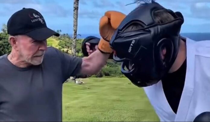 En las imágenes se lo ve entrenando al aire libre en Hawái, realizando ejercicios de combate y sparring con una energía que sorprendió a todos. Con movimientos firmes, reflejos activos y precisión, el actor demostraba que seguía manteniendo la disciplina que marcó toda su carrera.