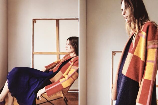 Cárdigan minimalista de lana a cuadros, Perramus; suéter cuello a la base, Vitamina; pollera midi plisada, Giesso.