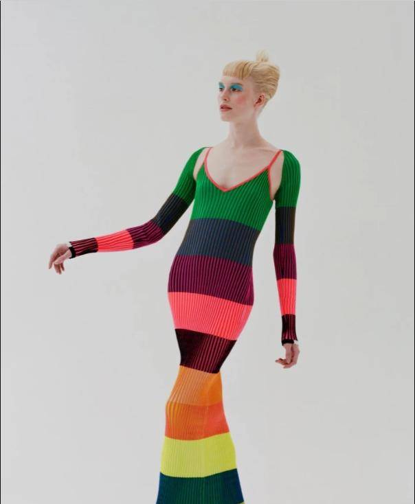 Rogers utilizó colores y adornos en todos sus diseños y provocó alto impacto. La energía de los colores sumó en su colección. Las rayas cobraron protagonismo también.