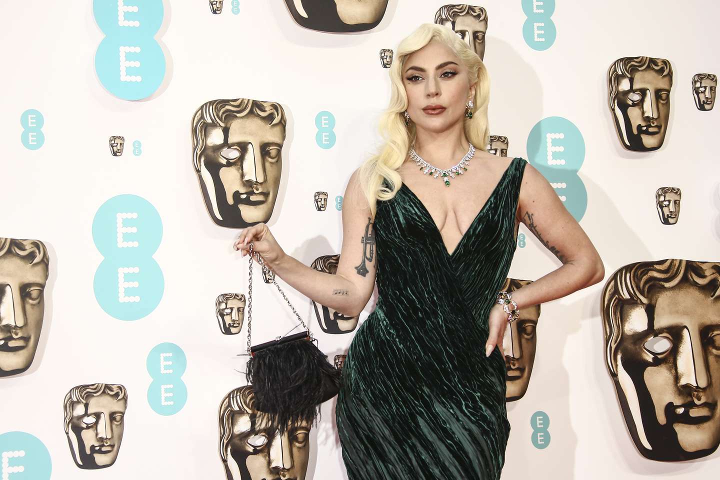 La actriz y cantante, nominada al Bafta por su papel en House of Gucci, fue una de las que más expectación generó en la alfombra roja, donde paseó con espectaculares joyas de Tiffany y aire de diva clásica de Hollywood vestida por Ralph Lauren.