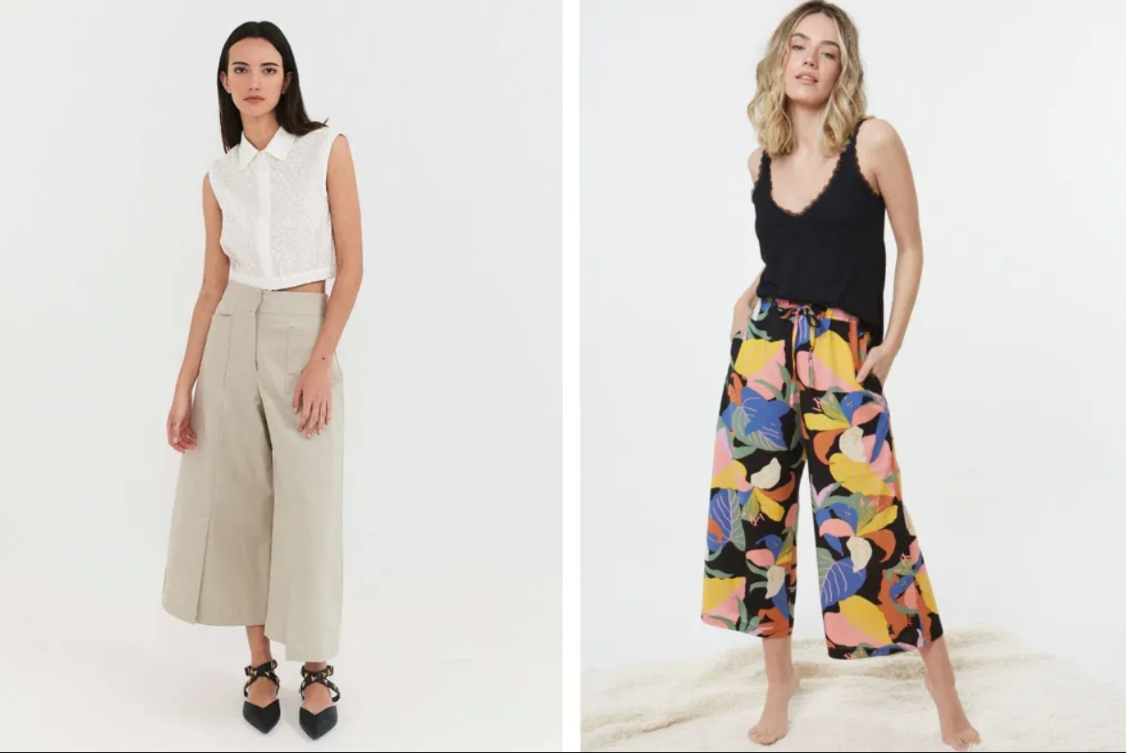 El pantalón culotte volvió para quedarse, y este 2024 va a ser una de las prendas más versátiles para sumar a tu armario. También llamado pantacourt, su diseño combina una parte superior ajustada a la cadera con un corte ancho en las piernas y que corta por encima del tobillo o a mitad de la pantorrilla, según el modelo, lo que lo convierte en un pantalón súper sentador.