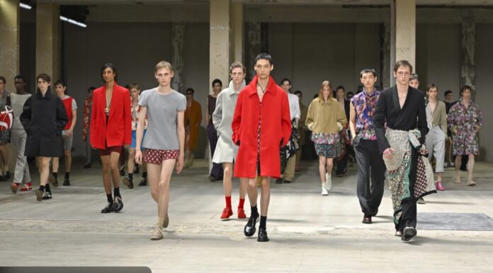 La paleta vibrante toma el control. El verano 2026 se pinta con colores primarios intensos: rojo, azul, amarillo y verde en su versión más pura. Loewe, Miu Miu y Celine lideraron esta explosión cromática que recuerda a una caja de lápices recién abierta. La apuesta es clara: energía visual, contraste y looks que llaman la atención desde lejos.