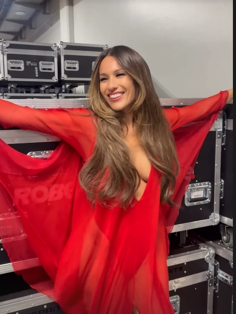 La participación de Pampita se integró al espectáculo de forma natural, destacándose por su presencia imponente y su conexión con el público. Desde la pasarela central del escenario circular, la modelo interactuó con los fans, quienes celebraron cada uno de sus movimientos y gestos glamorosos, mientras las luces y la producción del show realzaban su entrada.