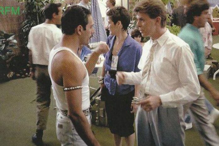 Ambos cantantes coincidieron en 1981, cuando el autor de «Starman» fue invitado por Queen para grabar en Suiza.