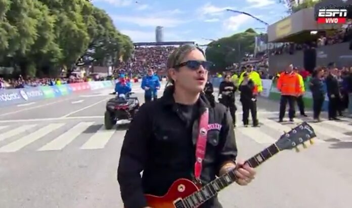 En ese contexto, el líder de Airbag fue el encargado de abrir la jornada con una versión del Himno que generó un clima de profunda emoción entre los presentes. El público acompañó cada estrofa, en un momento que combinó orgullo nacional, música y pasión por el automovilismo.