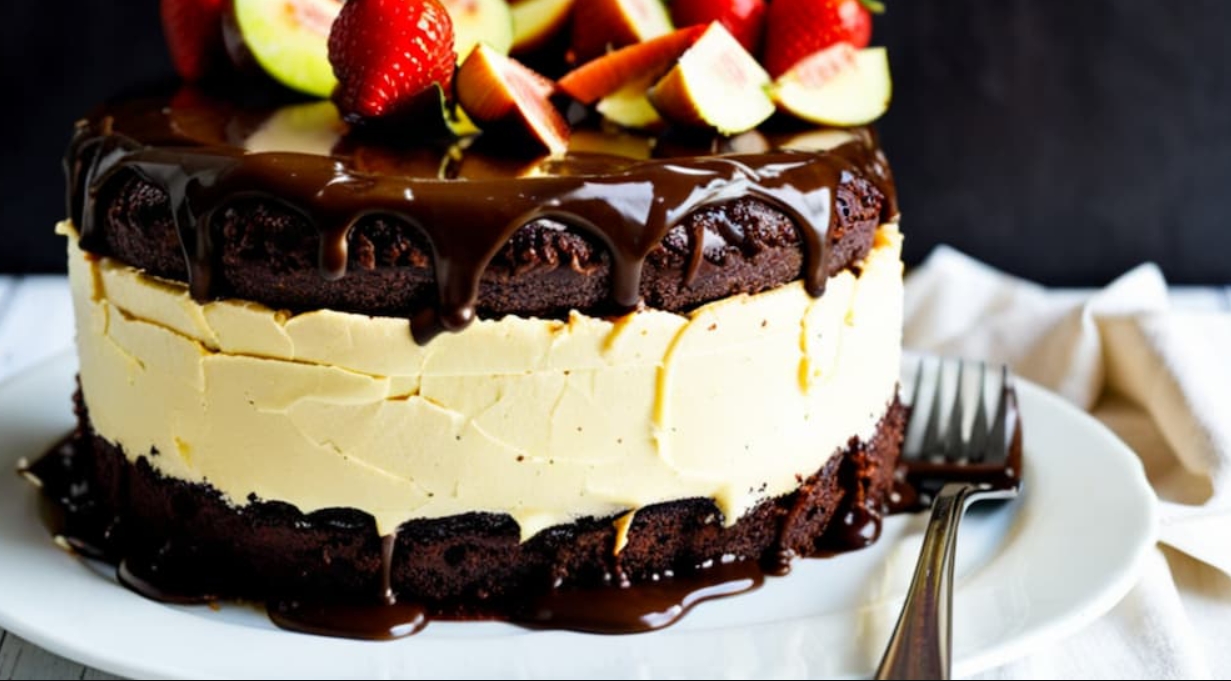 - Cubrir la torta con el chocolate, con ayuda de una cuchara o espátula. Se puede hacer sobre una rejilla para no manchar el plato o fuente. Llevar a la heladera nuevamente por 2 o 3 horas. Disfrutarla con un café o una copita de cognac.