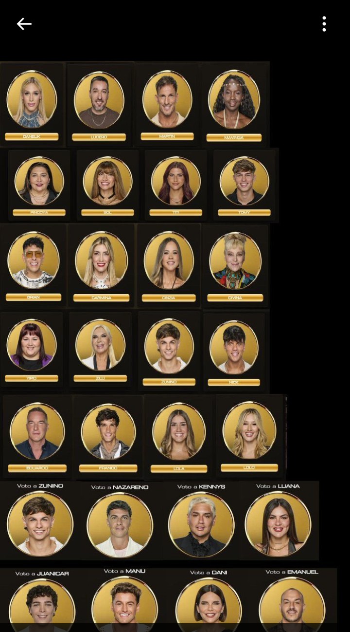 En la parte inferior de la placa también se leen opciones como “Voto a Zunino”, “Voto a Nazareno”, “Voto a Kennys”, “Voto a Luana”, “Voto a Juanicar”, “Voto a Manu”, “Voto a Dani” y “Voto a Emanuel”, lo que refuerza la idea de que se trataría de una captura vinculada al sistema oficial de votación.
