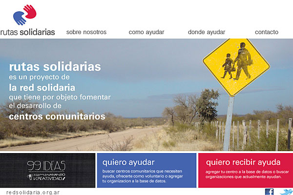 Rutas solidarias“, es un proyecto de Red Solidaria que busca que la ayuda llegue a todos las zonas, incluso a los más alejados de las grandes ciudades. También conecta a quienes quieren ayudar con los más necesitados. Te brinda la posibilidad de ofrecerte como voluntario o agregar tu organización a la base de datos.
