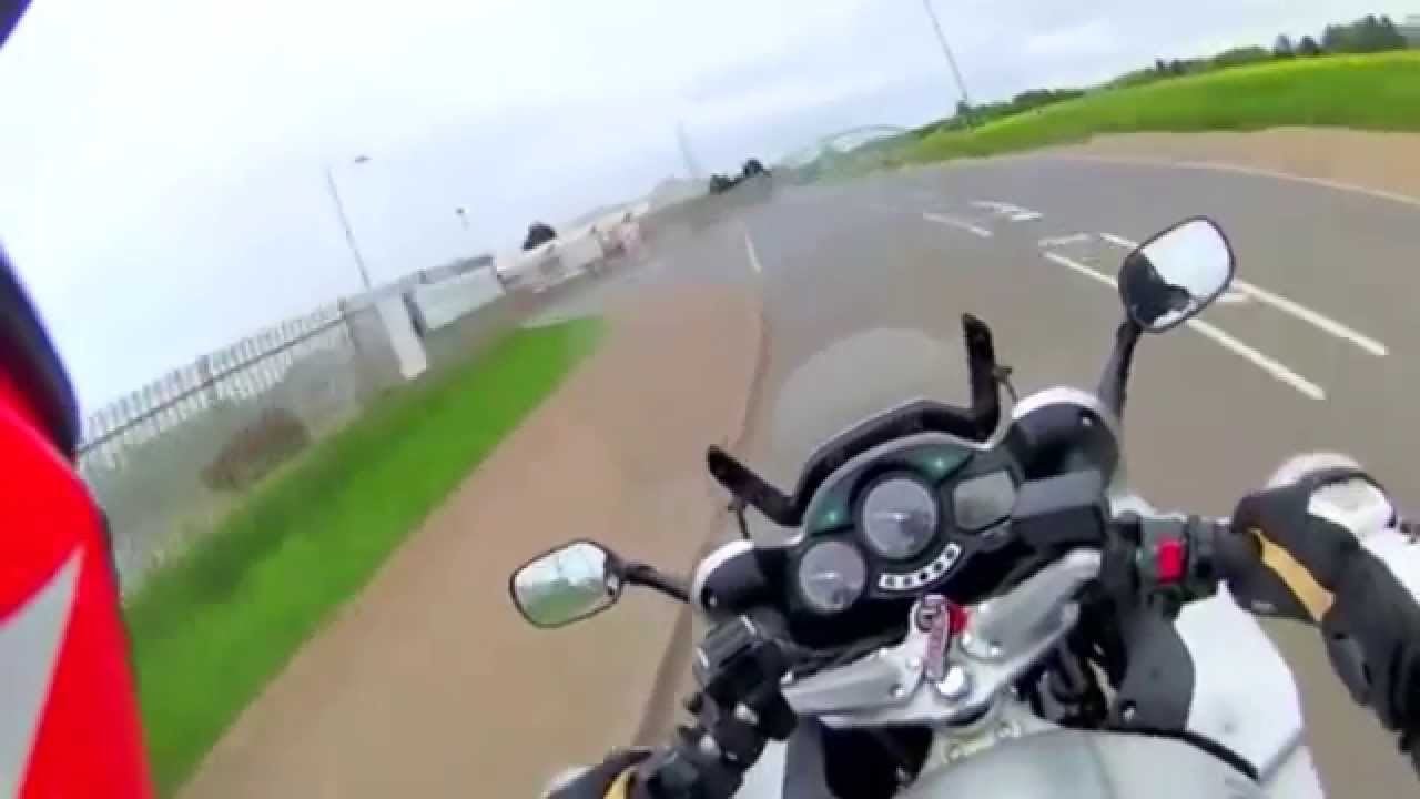 Entonces atravesó un portón y salió a toda velocidad. Circuló algunos metros y se cruzó al contracarril para sobrepasar con notable rapidez a otra moto y a dos autos que no iban lo suficientemente rápido.