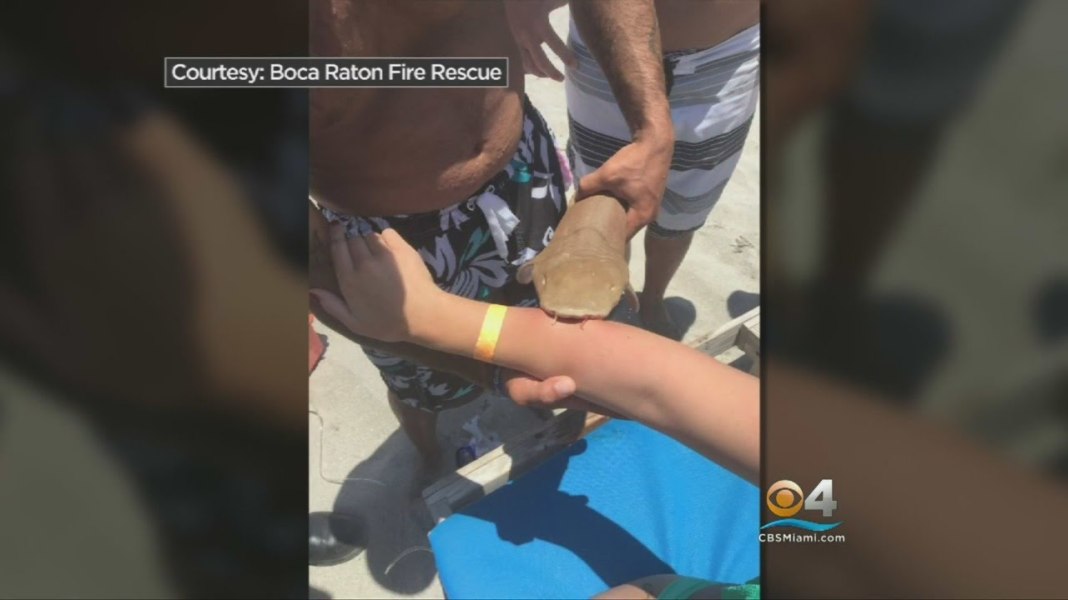 El pequeño tiburón gata, de 60 cm de largo, tenía sus dientes totalmente incrustados en el brazo de la nadadora. Para llevarla al hospital, los socorristas fabricaron una férula especial que sostenía el brazo y el tiburón a la vez, precisó el diario South Florida Sun-Sentinel.
