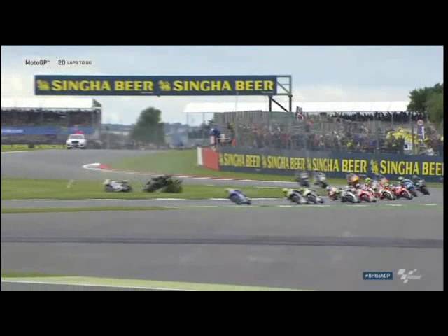Sucedió en el circuito de Silverstone (Inglaterra). El español Pol Espargaró y el francés Loris Baz se tocaron en los primeros metros de la carrera y sus motos salieron volando. Ningún competidor salió herido de gravedad.
